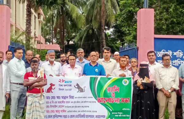 “জলাতঙ্ক নির্মূলে কাজ করি সবাই মিলে” এই প্রতিপাদ্য সামনে রেখে জেলা প্রাণিসম্পদ দপ্তর ও জেলা ভেটেরিনারি হাসপাতালের আয়োজনে নারায়ণগঞ্জে বিশ্ব জলাতঙ্ক দিবস-২০২৫ উপলক্ষে সপ্তাহব্যাপী বিনামূল্যে জলাতঙ্কে টিকা প্রদান, র্যালি ও
