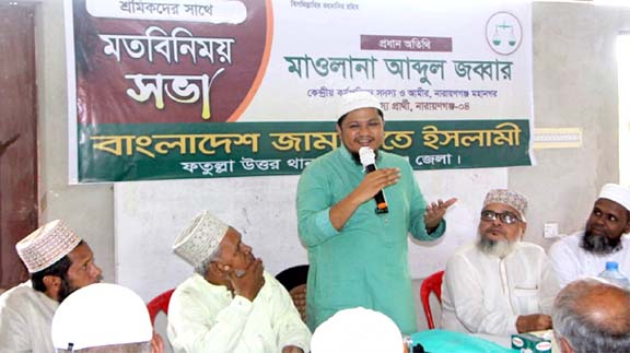 ফতুল্লা উত্তর সাংগঠনিক থানার শ্রমিক প্রতিনিধিদের সাথে মতবিনিময় সভা করেছেন নারায়ণগঞ্জ মহানগরী জামায়াতের আমীর ও নারায়ণগঞ্জ-৪ আসনের সংসদ সদস্য প্রার্থী মাওলানা আবদুল জব্বার। শুক্রবার সকালে ফতুল্লা এক অডোটিরিয়ামে অনুষ্ঠিত এ