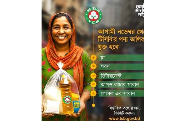 আগামী নভেম্বর মাস থেকে ট্রেডিং কর্পোরেশন অব বাংলাদেশের (টিসিবি) পণ্য তালিকায় যোগ হবে পাঁচ পণ্য। এই পণ্য তালিকায় রয়েছে— চা, লবণ, ডিটারজেন্ট ও দুই ধরনের সাবান। সোমবার (২৯ সেপ্টেম্বর) দুপুরে