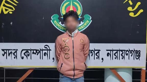 নারায়ণগঞ্জের সোনারগাঁ উপজেলায় প্রকাশ্যে পিস্তল উঁচিয়ে গুলিবর্ষণ করে এলাকায় ত্রাস সৃষ্টিকারী এক যুবককে অস্ত্রসহ গ্রেপ্তার করেছে র্যাপিড অ্যাকশন ব্যাটালিয়ন (র্যাব)-১১। শুক্রবার (৩০ জানুয়ারি) রাত ১২টা ২০ মিনিটে বিষয়টি নিশ্চিত করেন